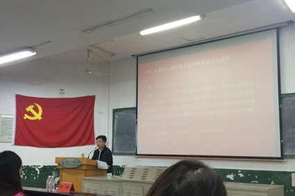 随后,他详细阐述了为什么入党、入党干什么这两个问题。他将为什么入党概括为三个“最好”:入党是大学生追求进步的最好体现,入党是大学生评估自我的最好契机,入党是大学生磨练自我的最好平台;并分别进行了详细阐释。接着,他回答了入党干什么这一问题,并将其概括为三“学”三“立”,即要学以立德、学以立身、学以立行,强调了品德、本事、实践的重要性,并分别举了一些例子,用故事、寓言、活动设计等形式加强同学们的理解。他特别强调同学们要具备最纯正的入党动机,努力由成就型转变为信念型,外力型转变为内力型,从众型转变为理智型,功利型转变为进取型,徘徊型转变为行动型。他还说到,形式上入党,一生一次,思想上入党,一生一世,入党梦连着中国梦。最后,陈庆之副书记以充满激情的语调预祝同学们早日加入伟大光荣正确的中国共产党。