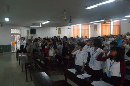 最后,在青年志愿者的宣誓声中,我院2014—2015年度志愿服务动员大会圆满结束。也希望我院志愿者践行“尽己所能,不计报酬,帮助他人,服务社会”的志愿精神,继续前行。