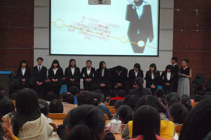第十四届团委学生会主席团成员及各部部长、各院系学习部部长以及各院辩论队队长。姚东喜和陈紫偲担任本次表演赛的主持人。