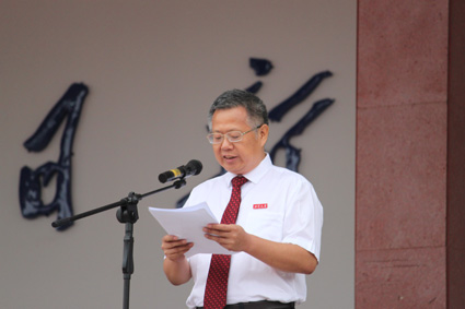 中文系主任宋德发教授讲话。伊始,宋德发教授就将“强健身体,这首先是我的教训,然后是我的经验”这句话送给了在场的14级新生。第二点,他希望学生们学会独立。宋德发教授从一则成年孩子状告父母不养的新闻,谈到生活不易,需要锻炼自己。最后,是告诫同学们要做一个好人。他认为,好人是做“利己不损人”或“利己利他”的事。懂的分享也是好人。宋德发教授希望新生们在大学期间,要做“和同学们分享除了爱情之外的任何的美好事物”这样的好人。他幽默风趣的发言赢得了在场同学的阵阵掌声。