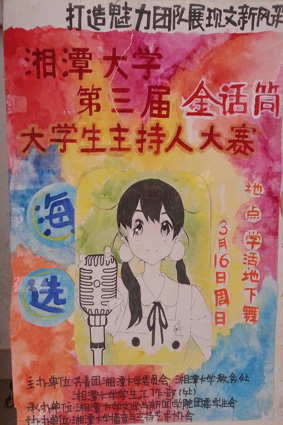 团委学生会承办,湘潭大学播音与主持艺术协会协办的第三届“金话筒”校园主持人大赛海选在学生活动中心地下舞厅正式开始。本届比赛共有208名选手参与角逐“金话筒”,创历届“金话筒”参赛人数之最。海选从上午九点进行到下午五点半,热闹非凡。各路群雄藏龙卧虎,尽显风采。