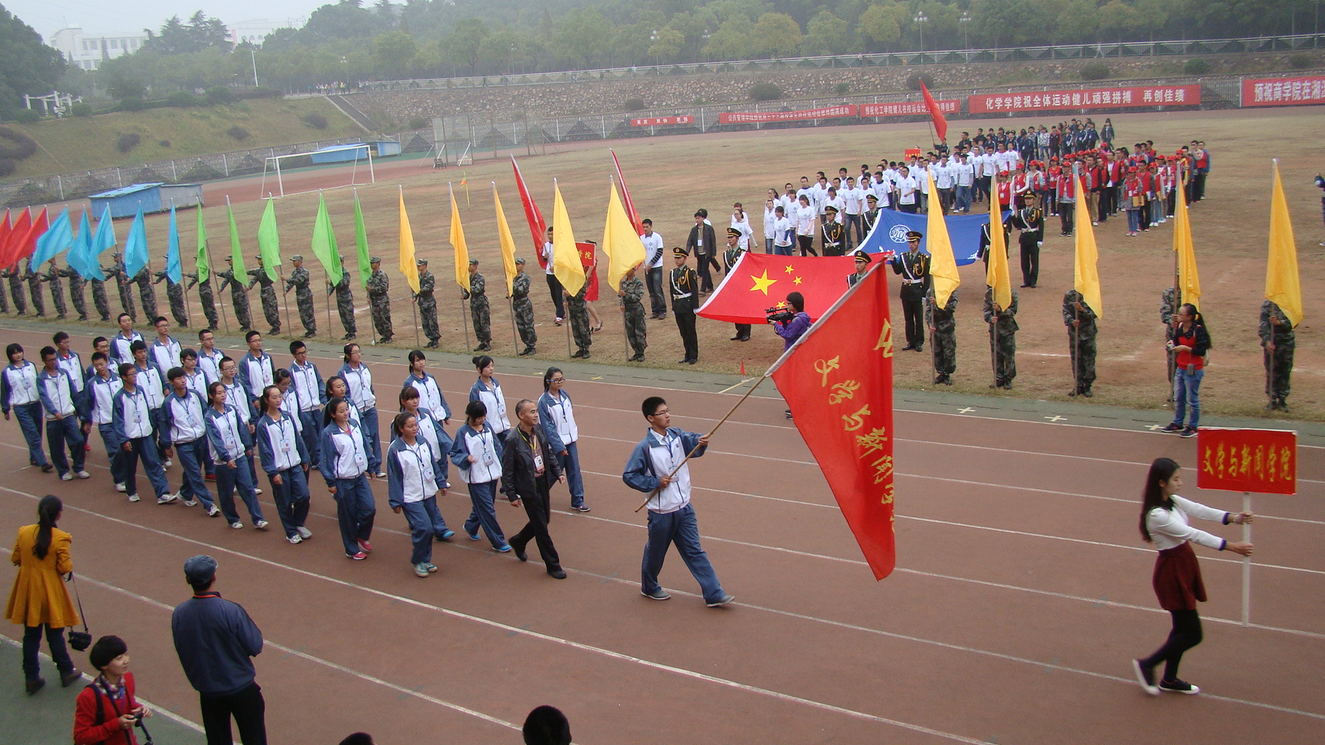 的运动健将们在飘扬的院旗的引领下,伴随着“文新文新,文体双馨”响亮的口号,迈着坚定的步伐走过主席台,展现出文新学子的精神风貌。