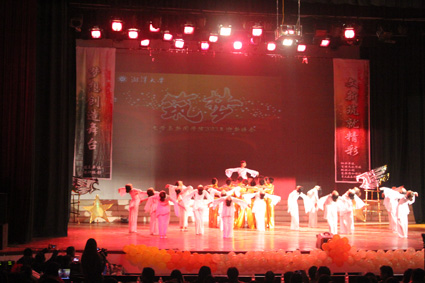 本场晚会以“筑梦”为主题,场中喷绘“文新筑就精彩、梦想创造舞台”悬挂于舞台两侧,整场舞台以黄色调为主,饰以气球彩带,营造了绮丽绚烂如梦境般的氛围。晚会节目形式灵活多样、异彩纷呈,舞蹈、歌曲、情景剧交替上演,既有高雅大气的乐器演奏,又有活泼灵动的热舞;既有新生的创意演出,又有部长、主席团的神秘节目,可谓亮点频出,精彩绝伦。而观众也被火爆的表演所感染,掌声不断,共同点燃了整晚的激情。