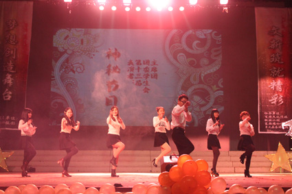 大家期待已久的神秘节目在最后终于揭晓。13级新生辅导员、第十三届团委学生会及主席团纷纷耍宝卖萌,各展风采,博得全场又惊又喜的掌声。受到大家热情的感染,雷磊副院长也上台为大家带来两首深情款款的粤语歌,现场掌声雷动尖叫不断,将晚会推向最高潮。最后,在《we are young》歌曲串烧中,本晚会圆满结束。
