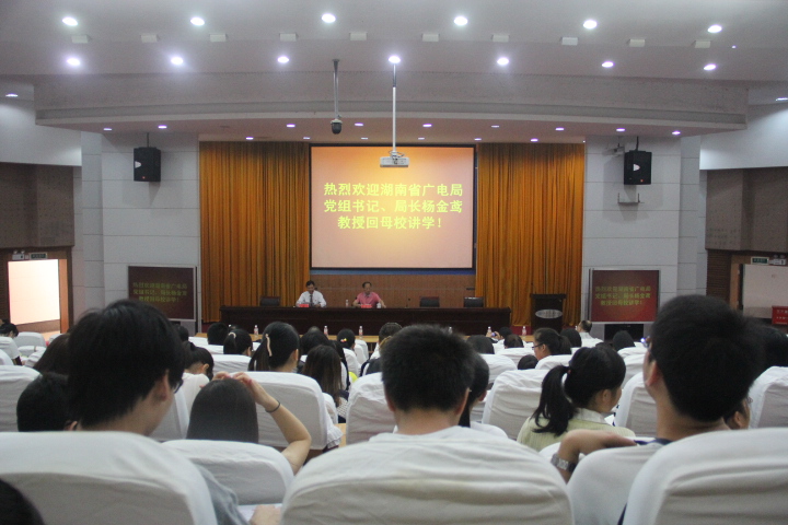 10月12日上午9:00,在逸夫楼第一报告厅举行了湖南省广电局党组书记、局长杨金鸢教授兼职我校教授的授聘仪式。湘潭大学副校长郑赤建教授为杨局长颁发聘书。足球赛事直播