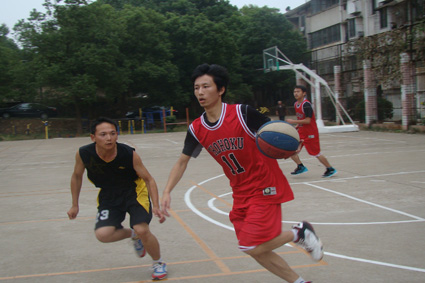 下半场,双方易地而战,比赛更加激烈。11中文3班开始绝地反攻。先是凭借罚球两罚一中先扳回1分,在11号球员郑强中投得分后,中文女将觉醒发威,进一球直接揽入4分。13广电2班也凭借猛将谢非的进攻再次得分。第三节结束,21:21,11中文3班追平13广电2班,进入末节。