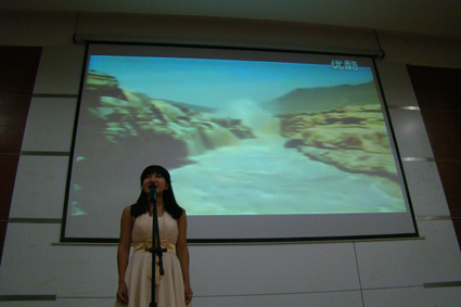 比赛包括自由朗诵和新闻播报及评论两部分。我院李慧同学在“文新文新,文艺双馨”的加油打气声中上台。一身白裙,身后是山河壮美的祖国美景视频,缓缓的音乐流淌,李慧同学面带微笑将一篇《我的祖国》朗诵得缓急相接,抑扬顿挫,令全场气氛顿时激昂活跃起来。而信息工程学院刘登超的洒脱自然、公共管理学院蓝楚楚同学的慷慨激昂收获了全场的掌声,取得了不俗的成绩。
