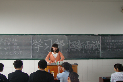 新学期伊始,我院团委学生会将招新工作视为重中之重,继摆点宣传之后,我院团委学生会各部门于9月7日在第三教学楼对已报名的13级新生进行了面试、复试。