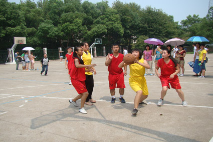 下半场开始,双方易地而战。由于天气炎热,双方体力下降严重 ,比赛也陷入僵局。随后中文班6号女将郑燕尝试突破上篮造成犯规,可惜两罚未中,接到队友传球中投一记拿下4分。而后新闻开始快攻战术,李彩董燕飞相继得分。三节战罢,5225,新闻优势明显。