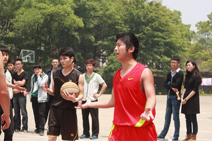 本来今天的比赛09中文只有5人出战,但是在比赛开始之前,球队的中锋桑文平风尘仆仆地赶到了球场。作为大四的学生,他们不止要在球场上战斗,在场下,找工作、面试、毕业论文所有的事情,都向他们扑来。所以,只要他能出现在决赛的场上,就是给观众最好的回报。受困于状态,桑文平没有能像科比一样上演“找工作法则”。没有得分,却有两次失误。但是他在万欣灵下场之后,尽最大的力量限制赵心宇,球队获胜的军功章,肯定要有他的一半。