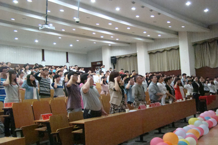 党委唐春副书记致结束词,他表达了对到场志愿者以及三院青志服务队的感谢,随后补充介绍了爱心血库工程的信息,他最后说到:“希望大家能坚持下去,发动更多的人参与公益活动,为建设和谐社会贡献自己的力量。”