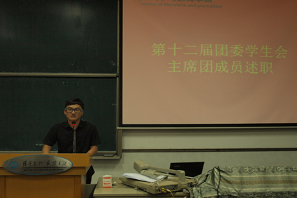 随后,第十二届团委学生会主席团及各部部长进行年度述职报告。主席团成员进行述职报告时,纷纷表达了对学院唐书记、管老师、肖老师的感谢。学生会主席张震、团委第一副书记沈照宇、学生会副主席洪斌、团委第二副书记刘静分别讲述了自己的三年学生会经历,表达了对足球赛事直播