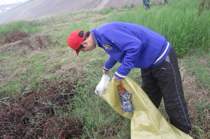 经过一个多小时的车程,志愿者们到达指定地点——湘江三大桥。六组队伍分发垃圾袋等所需物品并安排划分区域,接着便到大桥底开始拾捡垃圾。昨日的瓢泼大雨,给今日的活动增加了难度。由于草地里积水过多,志愿者们连行走都显得些许困难,每一步都必须走得小心翼翼,与此同时还要将江边垃圾拾起放入垃圾袋。有些志愿者的鞋子陷入泥沼里,裤子上全是泥点,却丝毫不在意,一心只专注于捡拾周围的垃圾。江边厚厚的雾气和呼啸着的大风也考验着志愿者们,但他们用自己的实际行动证明了文新学子不屈不饶的志愿精神。