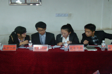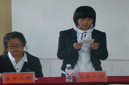 辩论队队长胡苾璇、副队长白月以及10级优秀辩手胡幸辉。本场比赛正方12中文3班的观点是“醉驾车乘客应该追究刑事责任”,反方12中文1班则认为“醉驾车乘客不应该追究刑事责任”。
