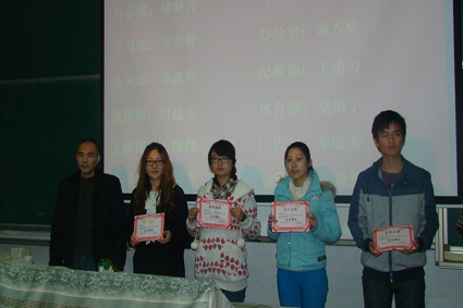 随后,团委书记管胜昔老师宣读本学期表彰决定,并依次对优秀干事、优秀部长和优秀部门进行表彰。