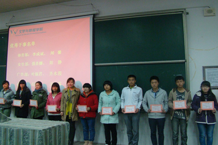 本次表彰大会对我院团委学生会的工作进行了年终总结,在这一学期中,我院团委学生会成功举办多项精品活动,时时践行着“打造魅力团队,展现文新风采”的口号,这不是结束,是新的起点,文新人将朝着精彩的明天继续前进。