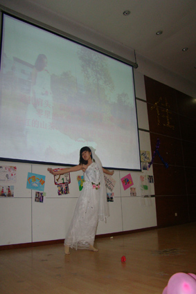 活动伊始,首先播放了由女生部精心准备的开场视频,视频以一位女生设计连衣裙为故事主线,展现了温馨女生的青春活力和对美的期待,视频风趣幽默,不时引起现场阵阵笑声。接着,文娱部七位女生献上充满活力的开场舞,现场气氛更加轻松愉快。