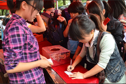 团委学生会主办的第三届班服设计大赛在北苑进行摆点拉票,12级新生积极参与,现场热闹非凡。