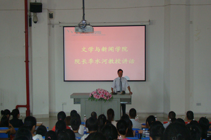 各专业在全校、全省乃至全国的地位,并介绍了我院的精品课程,引导新生树立文新人的骄傲。稍后,季院长还分析了人文科学的就业前景,指出时代发展要求重视人文科学的社会现实。最后,季院长详细讲述了大学生应当怎么做的问题,他谈到,大学生首先要有志向,而后要脚踏实地努力学习,并且要做到行知结合,培养“能说、会写、人际交往”的能力,以适应开放型社会的要求。