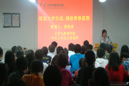 最后,管老师向大家描绘了大学四个阶段的不同任务,并告诉大家,“青春的含义就在于不管我们选择了什么,成功与否,都不后悔。”青春容得下错误,容得下一切,却惟独容不下后悔。