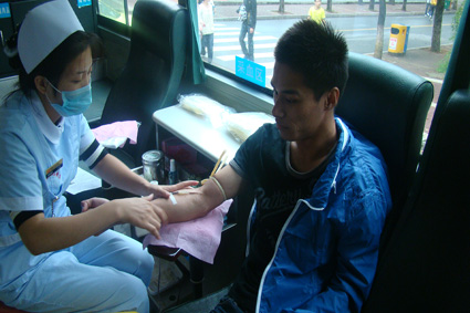 阴沉的天气阻挡不了大家献血的热情,南苑献血处前来咨询﹑献血的同学络绎不绝。青志部的志愿者们亲切耐心地为大家解惑答疑,指导填写献血单,并且在献血结束后为献血者提供一些小纪念品以资鼓励。在采访中,很多同学都表示,为国家公益事业做出贡献,不仅是一种荣誉,更是当代大学生的责任。一位曾多次献血的大四同学说,“自己只是在做身为大学生应当做的事,没什么特别的。”