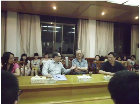 与其说今晚的讲座是一场严肃严谨的学术活动,还不如说是一场亦师亦友的对话交流。讲座伊始,两位先生就谁先开始还进行了一番谦让,最后还是在刘中树教授幽默风趣,轻松和谐的讲话氛围中开场。刘教授清晰地回忆了自己当年如何走向学术道路的种种标志性事件,虽然事件零散,思维跳跃性很强,但他确是如散文般“形散而神不散”,整个发言围绕“以文会友、多读诗书、勇于拜师”三个方面展开。其中讲到了他上大学时的许多逸闻趣事,引起在场观众的阵阵欢笑和喝彩,讲座内容看似跟论文写作直接联系不大,但却是写好一篇有思想又深度学术论文的良好奠基,正可谓“磨刀不误砍柴工”。最后,他特别强调研究生期间应有个详细的读书计划并努力执行,经常练习学术论文的写作,并且要有“坐冷板凳”的学术精神。与刘教授轻松幽默发言不同的是陆教授严谨有序的有关论文写作的“金玉良言”。他指出,写学术论文的过程就是一种能力的实践,思路的整理,应从以下两个方面着手锻炼:第一,要全面搜集与论文写作相关的材料,充分占有材料,做到沙里挑金,找出与论文写作相关的最尖端最有价值的材料。第二,选题范围要符合自己的兴趣爱好,大小适中,切勿大而不当,小而无间。陆贵山教授还为我们讲解了论文选题的四个限度:选题的广度、深度、选题的动态跟踪研究及其关系研究。只有在此基础上,才能做到稳健创新,从而写出新意和深意。