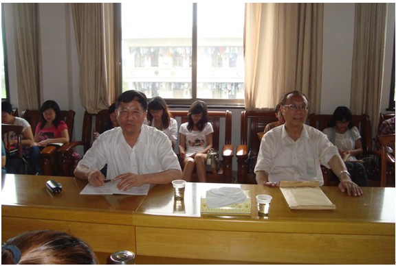 朱教授一进门就受到了师生们的热烈欢迎,在场的师生们兴致勃勃,热情高涨。一开始,朱教授解释说因时间关系无法对初定题目“实践存在论美学的提出与要点”进行详细论述,便把题目换成了“美学研究对象的探讨”。因美学研究对象问题自美学产生至今,一直是学术界争论的焦点,故朱教授根据研究对象决定学科性质这一论点,简单总结了以往学术界研究美学对象的几种观点:如研究美的本质、集中研究艺术、研究人的审美心理等。进而他又总结了中国美学的四大流派并在自己多年学术积累的基础上提出了独特的美学研究对象观:一是从语言学,语义学角度探讨美,研究美学,这体现在哲学美学上。朱教授指出,不能对“美”下名词性的定义,因为在不同的使用场合意思是完全不一样的,同时“美”的含义是找不到公约数的,否则便把美的具体语境和内容都抽空了,只剩下空洞的概念。二是从传播学、翻译学角度。朱教授详细叙述了美学一词“Esthetic”的翻译传播过程,试图从这流传过程中探讨研究美学对象。三是从生成论的角度去追问“美”。他指出,传统的对“美是什么,美的本质”这样的问题是从实体论和认识论出发的,研究美学应该把“美”看成是一个不断生成的过程,没有终极意义上的美。经过一番美学研究对象的巡礼,朱教授最后明确提出他继承美学大师也即他恩师——蒋孔阳先生的美学观点——审美关系说,并指出审美关系出现的几种条件。