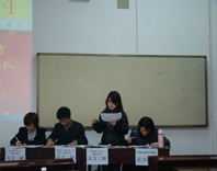 本次比赛是复赛的第二场,辩题为“China should continue the practice of web-sale of train tickets”, 我院陈雅,邹雨柔为一队,分别为正方三四辩,另一队为高点点,沈照宇,为反方一二辩。另外,外语院一队为正方一二辩,反方三四辩是研究生队。选手陈述流利,有风度,使得比赛富有观赏性。