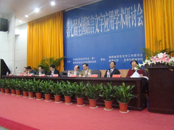随后,在10点正式开始的学术报告会上,教育部语言文字应用所所长姚喜双作了《普通话普及情况调查分析》报告。余士汶教授则作了由北京大学计算语言学教育部重点实验室,郑州大学信息工程学院主办研究的《现代汉语虚词用法词典用法知识库》学术报告。教语研副所长,魏晖作了《浅议汉语的发展与规划》报告。最后,由湘潭大学中文系主任李军华发表《车尾标语的社会语言学考察》,研讨会开幕式及报告会结束。