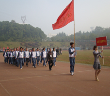 运动员代表队身着白灰运动服第五个出场,展现出文新学子的飒爽英姿。其中不仅有经过严格训练的体育特长生,也有意在挑战自我的体育爱好者。他们信心满满,蓄势待发。