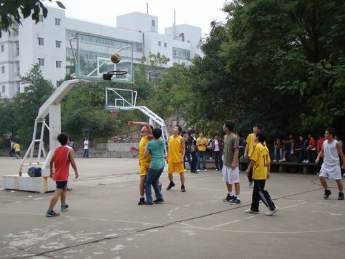 在双方队员进行了简单的热身后,男篮比赛于1点半正式开始。一侧身一传一接,研二选手配合默契,比赛一开始就显示出了优势。研一选手丝毫不敢放松懈怠,围追阻截。在上半场结束时,研一队仍以7分之差失利。下半场一开始,研一队就显示了后发制人的强大冲劲,可终不敌研二队在实力上的明显优势和天衣无缝的配合。研二队最终以64比48的绝对优势战胜了研一队。