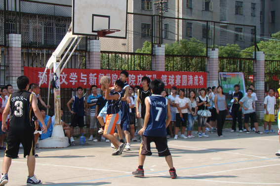 “文新杯”篮球赛在北青篮球场随着表演赛的开场而正式拉开帷幕。表演赛由09级联队对阵07、08、10级组合队。最终,组合队以68:66两分优势险胜09级联队赢得比赛。