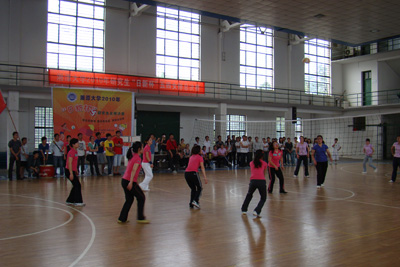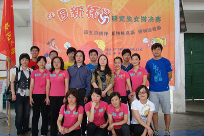 5月11日下午四点钟,我院女排与数学院在体训馆展开了日新杯女排比赛季军的争夺。我院杨向荣副教授和研究生工作办公室思政干事刘璐老师也来到了现场,与到场的我院研究生一起为场上的队员们呐喊助威。