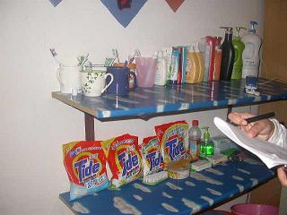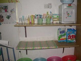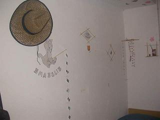 参观的第一间寝室是北苑七栋309,也许是班级通知上出现了问题,309的男生们并为准备好,另评审团有些无奈……当评审团步入303寝室的时候,被里面的布置震惊了:并未怎样特意布置,而是将所有的衣服、毛巾都挂了出来,主题就是:以乱为美。评审之一的张鼎盛学长给出了中肯的评价:属于后现代派风格!男生寝室的布置另评审团微微有些泄气,实在是“原版原样,毫无风格”。