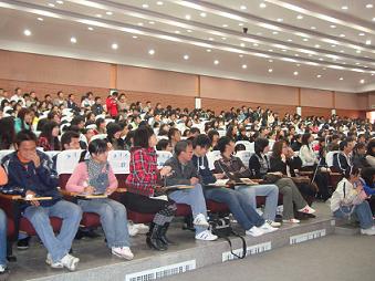 本来3:00开始的讲座,但提前半小时报告一厅已座无虚席,后面来的同学不得不站在最后一排,或者坐在了走道中间的阶梯上。大家都对《新闻学概论》的作者李教授充满期待。到3点,李教授先到前台鞠躬,全场都起立鼓掌。在简单介绍过以后,李教授用他直白幽默的语言开场。切入主题,他首先用一组组的数据,经过与其他国家,与世界平均水平的对比让大家认识到中国新闻改革30年后的状况。