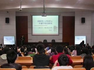 陈培爱教授的演讲题目是《创新型人才培养与传播学前沿研究》。在近两个半小时的演讲时间,陈培爱教授给大家带来了一场精神饕餮盛宴。陈教授首先从他教过的学生中列举了“四个学生代表”,如中央电视台广告部主任夏洪波、广州天进整合营销传播机构董事长冯帼英等,告诉我们创新型人才是需要培养的。在分别进行讲述的创新性人才怎样培养、关于创新型人才的培养问题的思考等问题后,陈教授开始用“易中天现象”等三个例子为我们诠释了何谓创新性人才。之后为我们讲述了创新型人才培养存在的问题,创新性人才培养的人文环境。最后他给我们总结了一个公式“正确的人生观——美丽的校园——宽松的文化——优秀的教师——良好的设施——一流的人才”,用他的话说“这是培养人才的黄金公式,是必要条件!”。然后陈教授简单的为我们阐释了关于新闻传播学前沿问题的关注。最后,陈教授与同学们互动交流,回答了在场同学的提问。