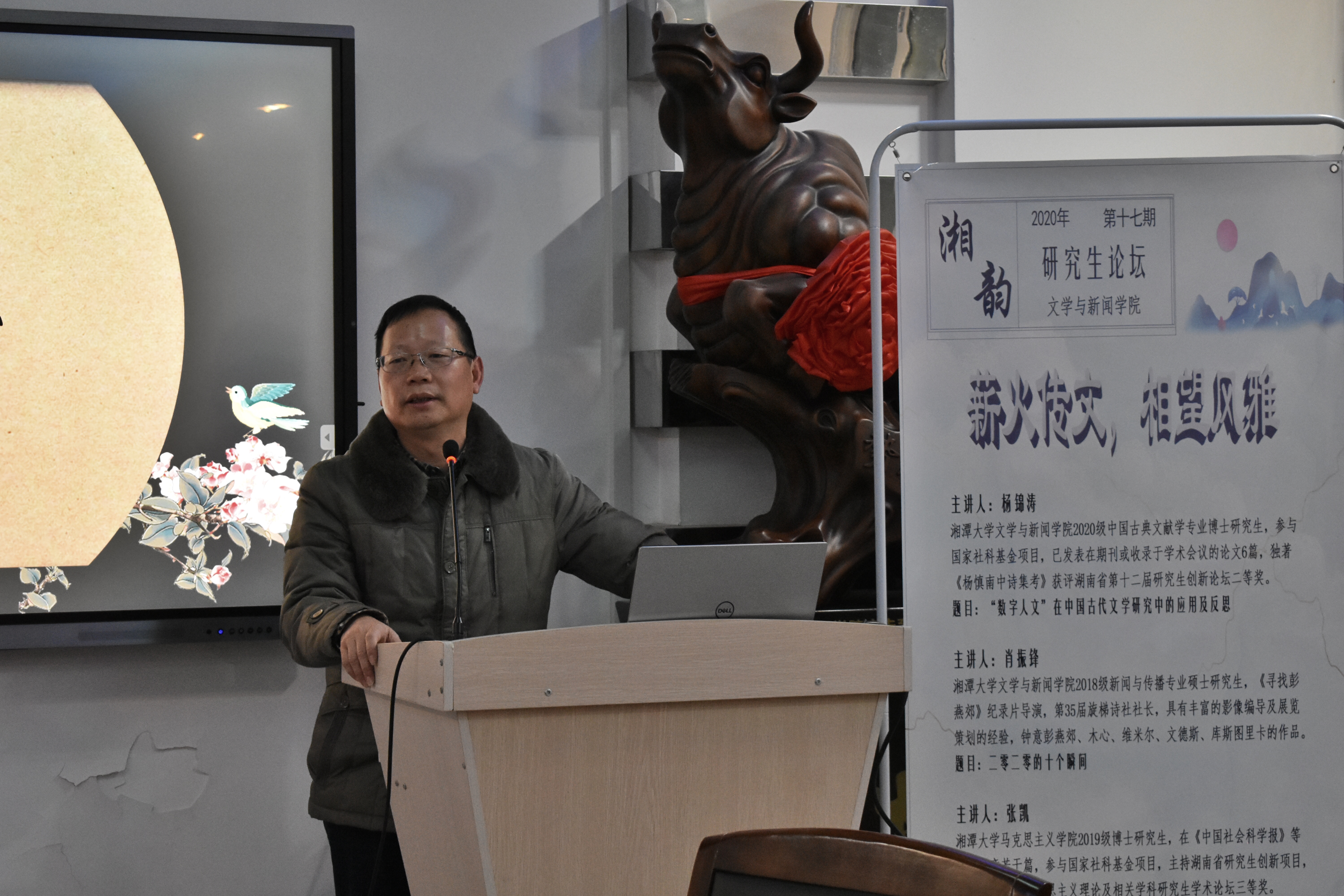 研究生会、研究生团总支承办的“薪火传文,相望风雅”——第十七期“湘韵”研究生论坛在文科楼318会议室成功举办。