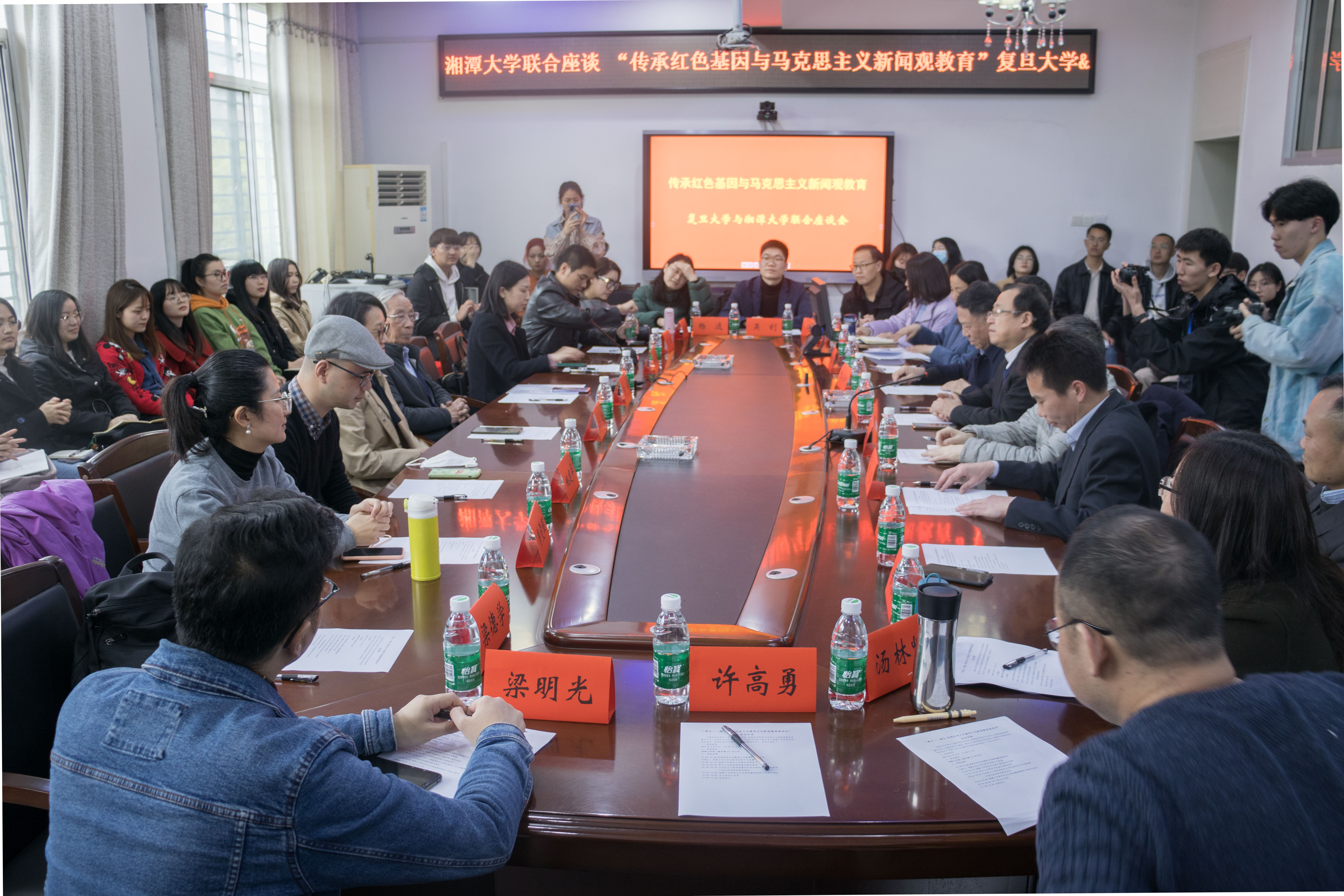 会议伊始,刘建平副校长致辞,他对童兵教授与马凌教授一行来到湘潭大学表示热烈欢迎,并介绍了湘潭大学的红色历史以及与复旦大学的渊源。同时,他表达了对两校进一步发展友好关系和建立合作的深切期待。童兵教授对湘大师生表示感谢,他说:“湘潭大学有很深的红色渊源,我们此次来此学习,就是希望能够汲取红色发源地的经验。”童兵教授提出四个愿望:加强两校的文化交流、在政治上多做沟通、两校能够加强合作、师生在治学时能够有更多思想上的积累。同时,他也表达了对两校友谊天长地久的美好祝愿。