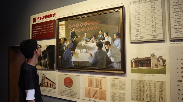 在旧址内还有一个房间还原了第一次工农代表大会的场景:桌上只摆在一盏煤油灯,几个仅仅能称得上结实的水壶,桌旁摆着几条长凳。站在这个房间里,不由得回想起在风云变幻的年代里由这体现着的整个中国共产党百年来筚路蓝缕的历程。这里的每一张照片、每一个场景无不向我们展示革命烈士们当时艰苦的生活和不屈不挠的斗志,彰显着崇高的革命精神,艰苦二字不再仅仅是书本上单薄的横竖勾画,有了厚重光荣革命历史的底色。