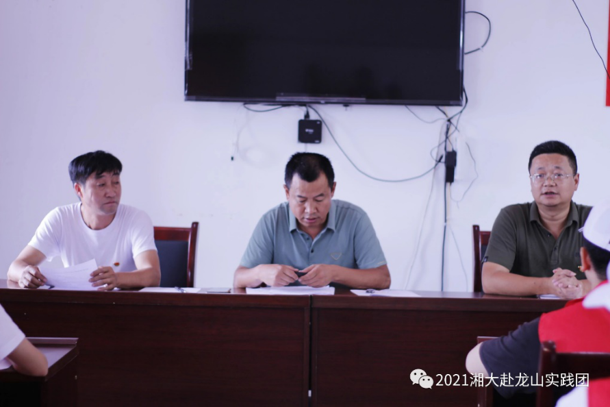 2021年7月8日上午,湘潭大学暑期赴湘西龙山社会实践团抵达龙山县红岩溪卜纳洞村村部,村委书记、副书记以及驻村第一书记对此表示热烈欢迎。双方简单自我介绍之后,在村委会议室进行了相关采访。