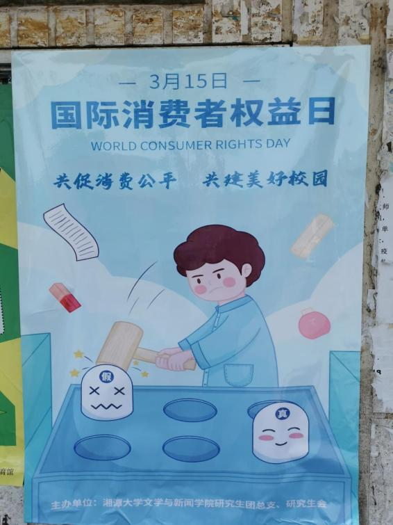 研究生会成员在校园各个宣传栏处以张贴海报、挂横幅的方式,图文并茂的让大家对"消费者权益日"进行了解,并通过宣传标语让大家了解权益维护的渠道和途径。