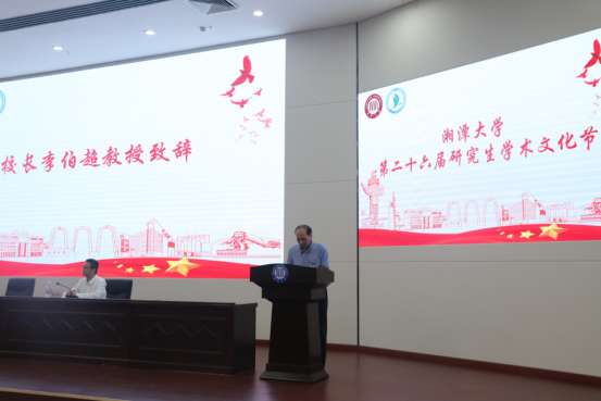 会议开始,李伯超指出,科学精神、人文情怀和优良学风都是当前学术文化的基本要素,一年一度的研究生学术文化节是彰显湘大研究生学术文化的重要平台,也是同学们参考学术、教育思想的中央舞台。他勉励同学们要树立学术理想,培养学术兴趣,夯实学术基础,积极参与学术实践,提升学术能力,努力在学术的道路上开花结果。