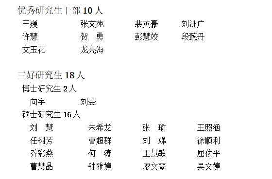 根据湘潭大学关于做好2019-2020年度研究生评优工作的通知的文件精神,按照公平、公开和公正的原则,经研究生本人申请、院研究生综合评优评定小组评审,现将本院2019-2020学年研究生综合评优评定结果公示如下: