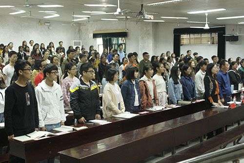 党委副书记周鹏飞老师主讲。首先,周书记举例论证了知晓入党流程的重要性,并引导同学们思考入党目的。随后,周书记引用并解读了一些古诗词来论证注重经典阅读的重要性。思想决定以后的发展,他殷切地建议大家要加强对中国优秀传统文化的学习,提高自身修养,培育良好品德,从而在思想上更好地向党组织靠拢。“才者,德之资也;德者,才之帅也”,周书记的话让同学们对才与德有了更深的了解,增强了同学们的责任感。接下来,继续围绕提高发展党员质量,周书记详细具体地介绍和解读了成为党员的五个阶段的内容和要求,并向同学们强调流程规范的重要性。随后,周书记用语重心长而不失幽默的话语向同学们提出了殷切期望,他强调,要早日成为党员,就一定要做好充分的知识储备,全面发展自己,才能有更多的机会。除此之外,他还引用了近日发生的重庆公交事件,教导同学们要从多维角度解析问题,学会包容和责任,提高自律意识,把握好人生曲线,将目光放得更加长远,学习劲头和效果才会更好,共产主义理想信念也才会更加坚定。最后,他又对强化教育培训,加强组织关系管理,严格党费收缴,切实作用发挥,建立完善各项制度,扎实推进制度实施等诸多方面进行了简要的介绍,并对当今中国特色社会主义理论体系、党章等相关内容进行了解读,同学们都获益匪浅。至此,第2期入党积极分子培训班第二次授课圆满结束。