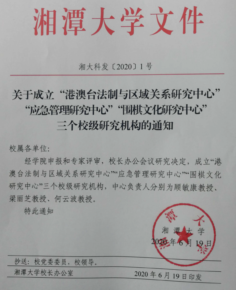 鉴于湘潭大学在围棋文化研究与教育、推广中所做的一系列工作, 2019年6月,湘潭大学正式批准成立校级研究机构“围棋文化研究中心”。研究中心由何云波教授领衔,挂靠足球赛事直播