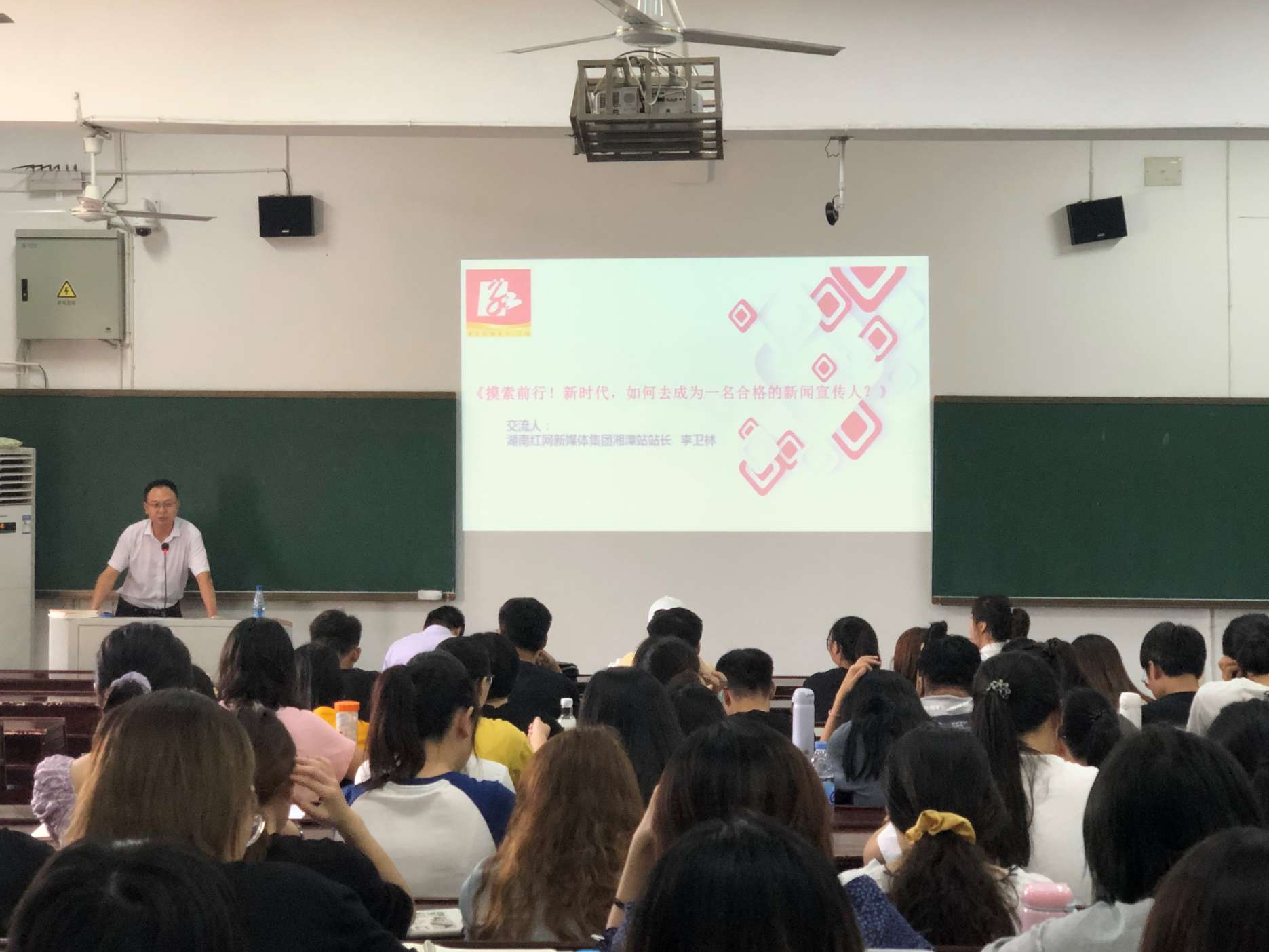 “不断学习,全面、全能,才能成为一名合格甚至是优秀的宣传人!”9月8日14时30分,湖南红网新媒体集团湘潭站站长李卫林老师做客逸夫楼201,以自身十余年的从业经历,与广大新闻学子畅谈 “新时代,如何成为一名合格的新闻宣传人”这一主题。
