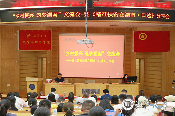 “乡村振兴 筑梦湖南”交流会——暨《精准扶贫在湖南·口述》分享会在图书馆报告厅举行。唐湘岳教授、院长雷磊、湘潭大学出版社党总支书记、社长申永丰、湘潭大学党委宣传部副部长孙明辉、院党委副书记周鹏飞等老师出席分享会,本次活动由院党委书记资义平主持。