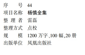 院长雷磊教授主编的《杨慎全集》入选首批重点出版项目。