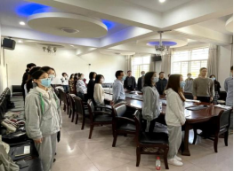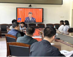 10月16日上午9点,师生们来到了文科楼318会议室,围坐在屏幕前共同收看党的二十大开幕会直播。会议伊始,参会师生集体起立奏唱国歌,在悠扬的国歌声中会议开始了。在习近平总书记为时两个多小时的报告过程中,在场师生始终认真听取会议内容,并记录报告重点,收看现场不时自发地响起热烈的掌声。