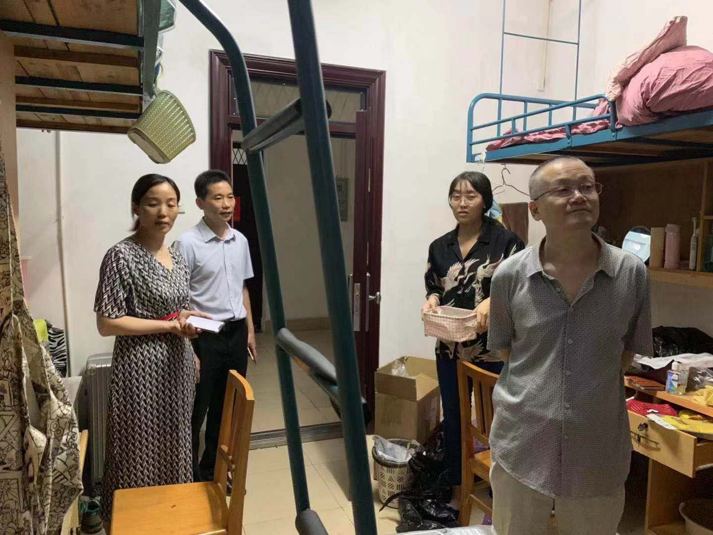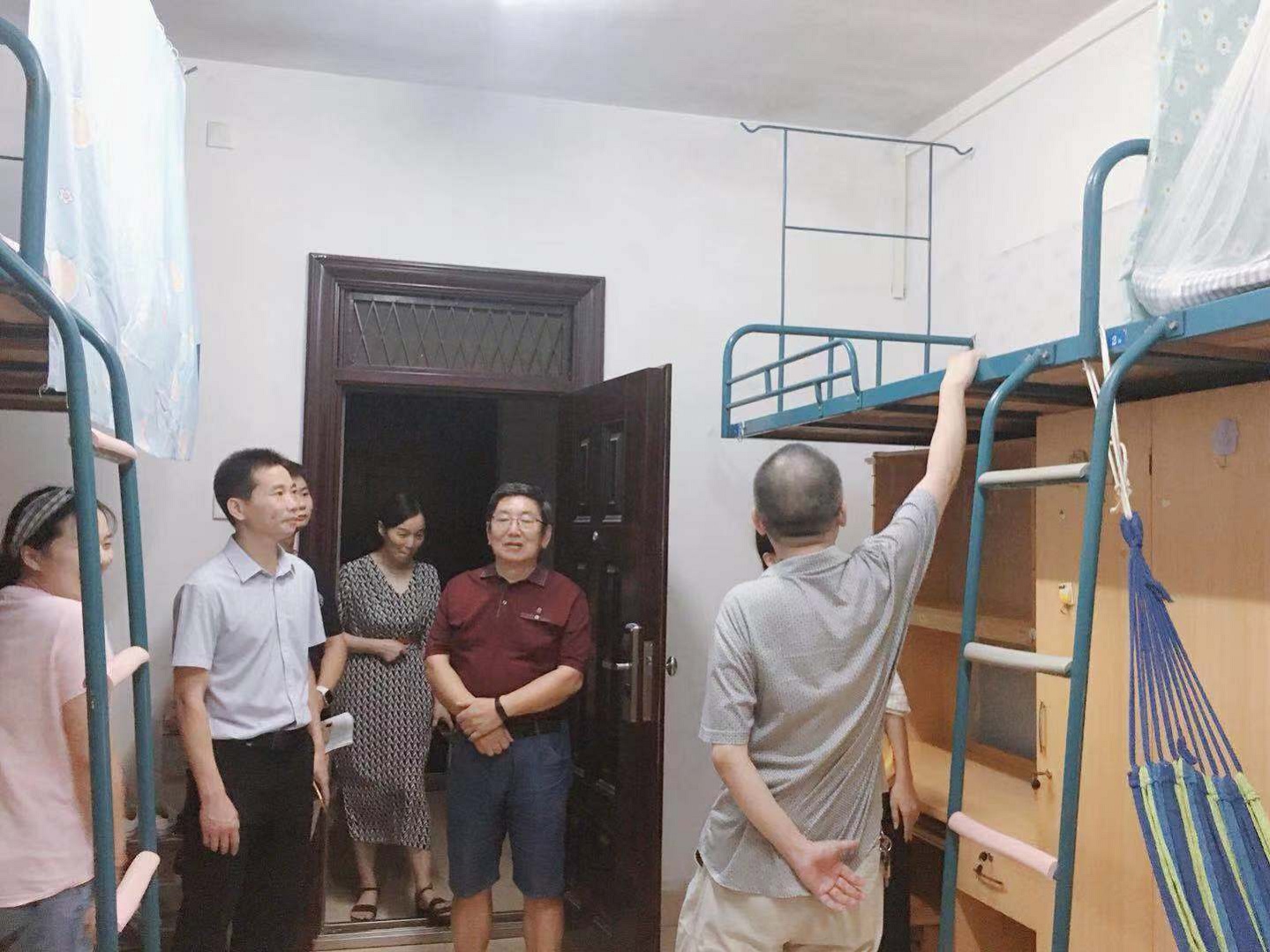 走访过程中,院领导、老师与新生家长们就宿舍条件、适应情况、困难问题等进行交流沟通。在注意到大多寝室都紧闭门窗时,院领导和老师们提醒新生夏季炎热,开空调纳凉的同时更要注意通风问题,同时也提醒同学们湖南气候非常湿润,天气多变,要注意身体健康,有任何不适要及时就医,鼓励同学们在以后的学习中多与老师沟通联系,要对未来的学习生活有信心、有恒心、有毅力!在与家长聊到孩子的适应性和依赖性问题时,领导、老师们耐心开导家长,鼓励家长们放宽心,让孩子多独立,从而学会独立。李院长表示,学校持续关心同学们的诉求和需要,近几年一直不间断地针对生活条件进行着改善与革新,今年上半年,学校基本实现了空调全覆盖,“洋气”的南苑师生餐厅为同学们打造了又一处美食坐标,满足同学们不同的饮食习惯,希望同学们要珍惜继续读书深造的机会,努力学习增长本领,为把自己锻造为国之栋梁、为实现伟大的中国梦而聚力。此外赵书记在与学生家长的交谈时,亲切地关心他们前来报道的出行方式和家长住宿安排,赵书记非常感谢家长朋友们把孩子送到湘大、送到足球赛事直播